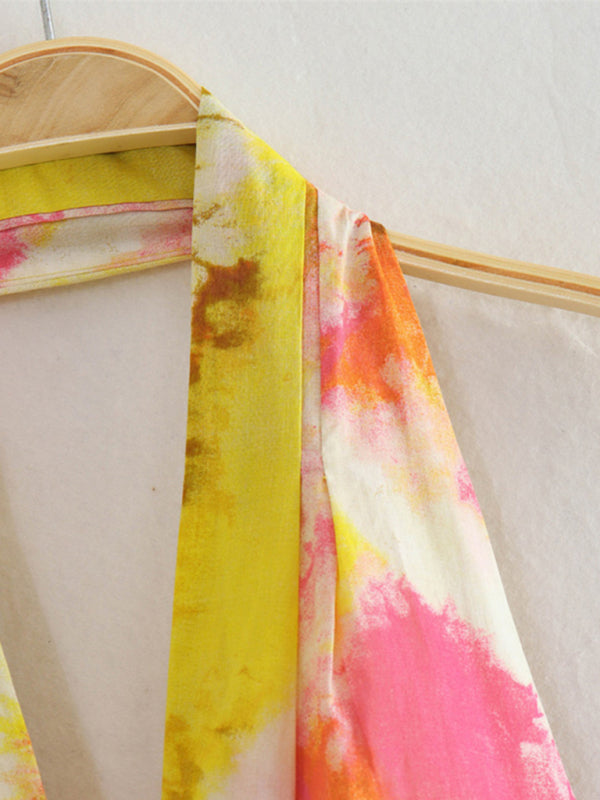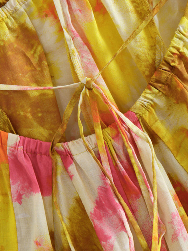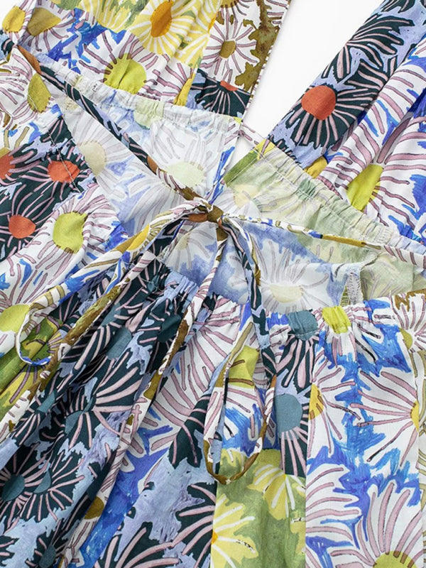 New fashionable V-neck suspender sexy printed halter neck short dress
