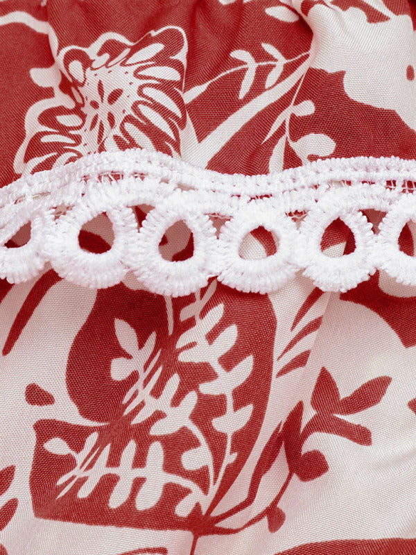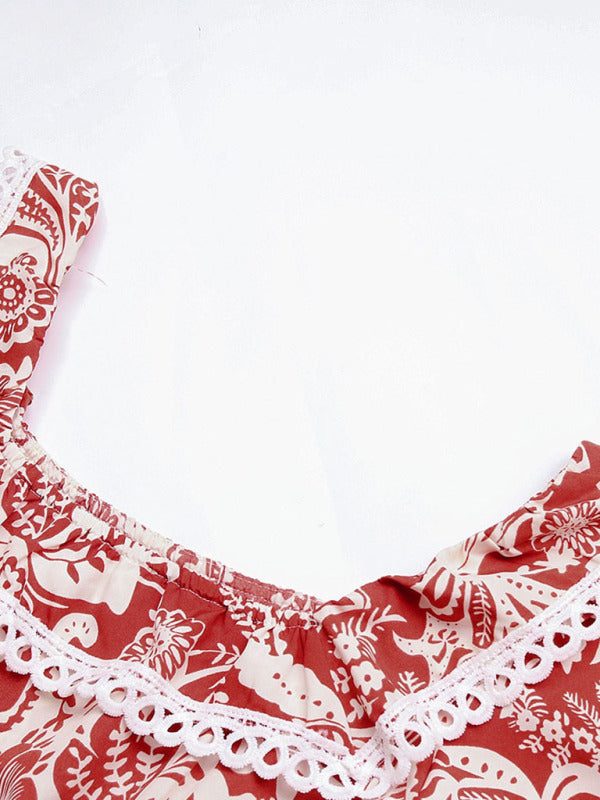 Women's Woven Square Neck Long Sleeve Printed Dress
