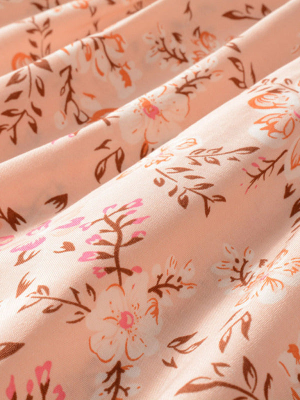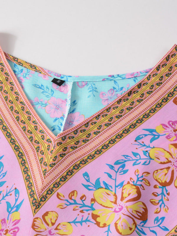Women's Woven V Neck Bohemian Print Short Sleeve Dress