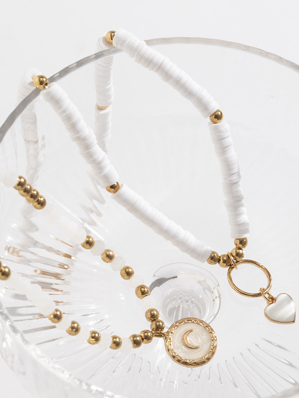 Colar de argila macia de temperamento retrô boêmio, colar de cristal de amor simples de estilo étnico