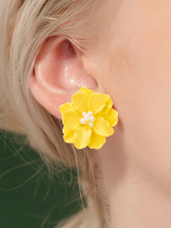 Brincos de pérola de flor branca tridimensional de camélia exagerada simples e versátil